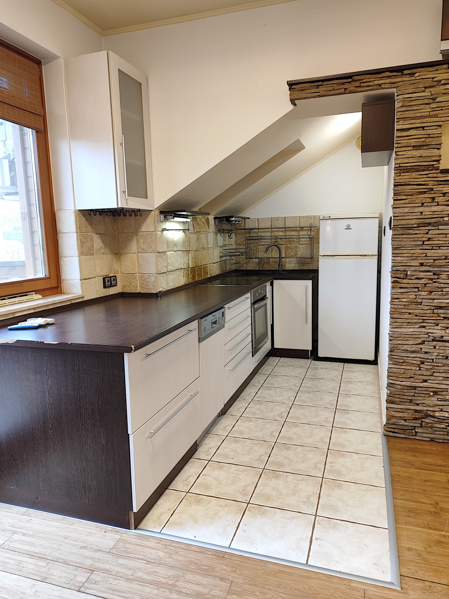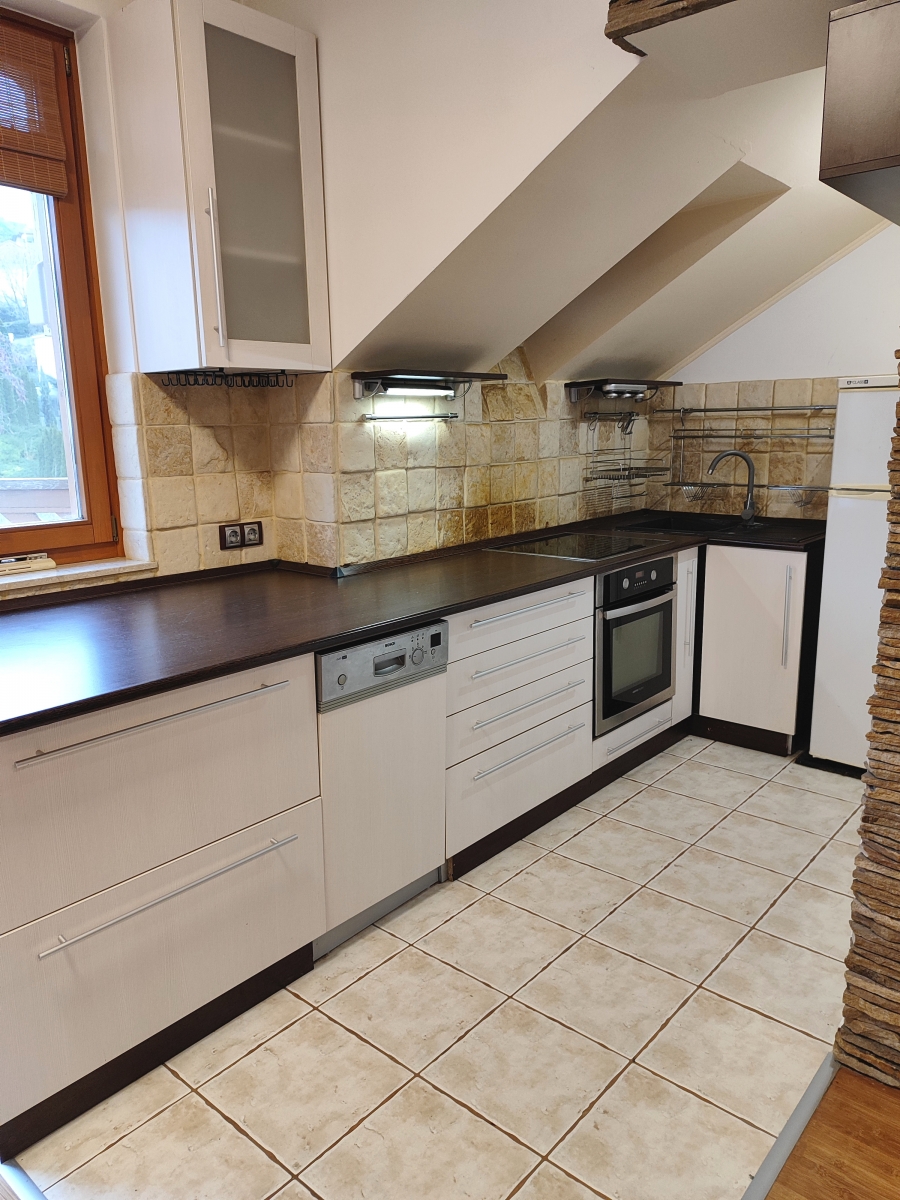 A konyhai részen és a hálószobában tetőtéri kis ablakok találhatóak.