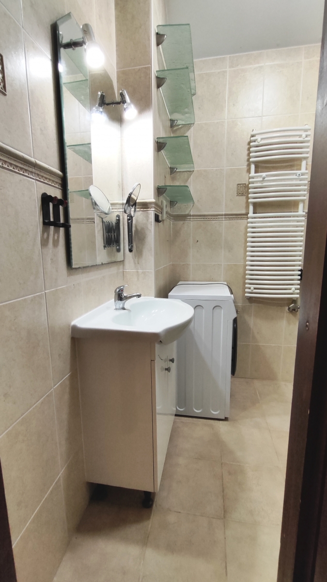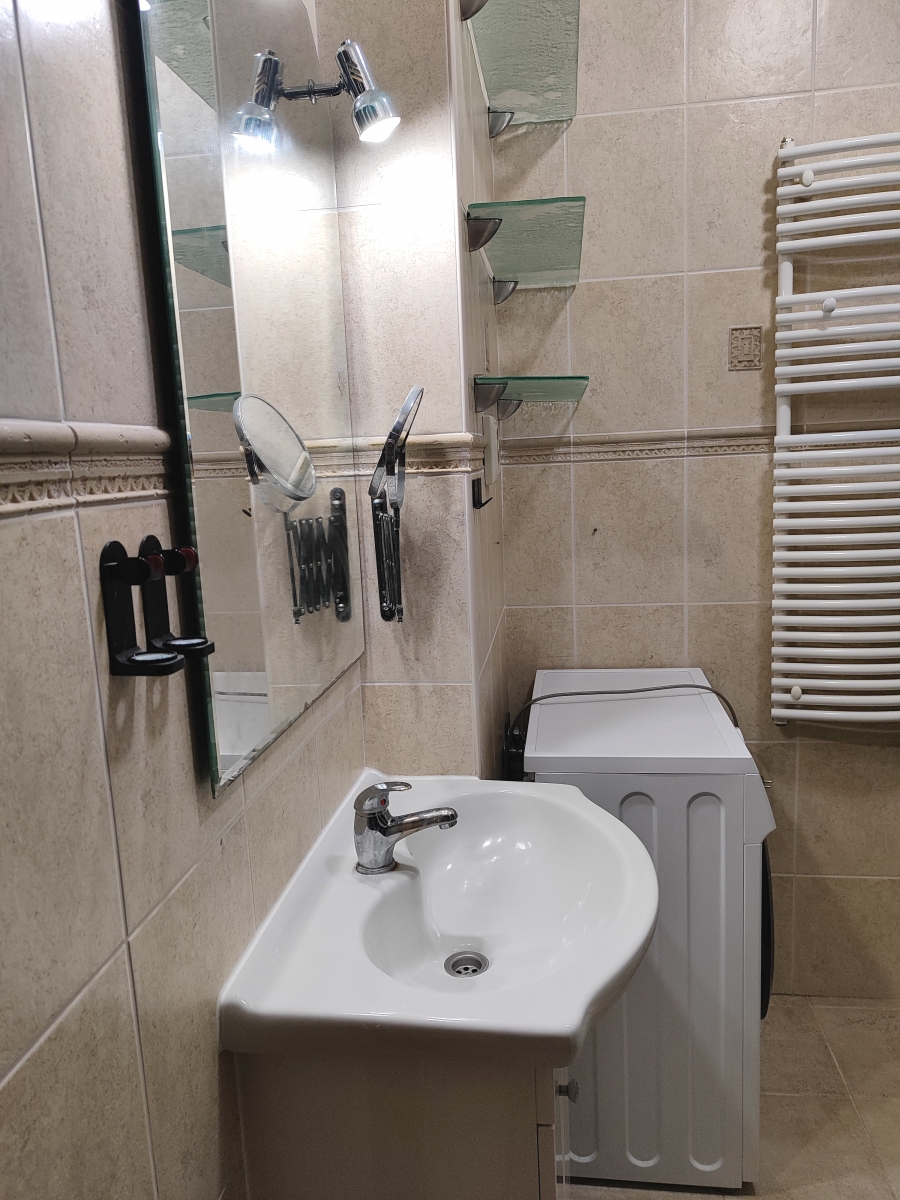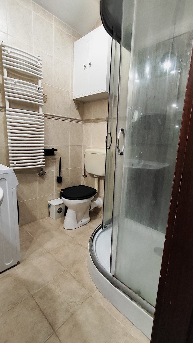 A fürdőszoba és a wc egy helyiségben van. Zuhanykabin található, ez igény szerint cserére szorulhat.