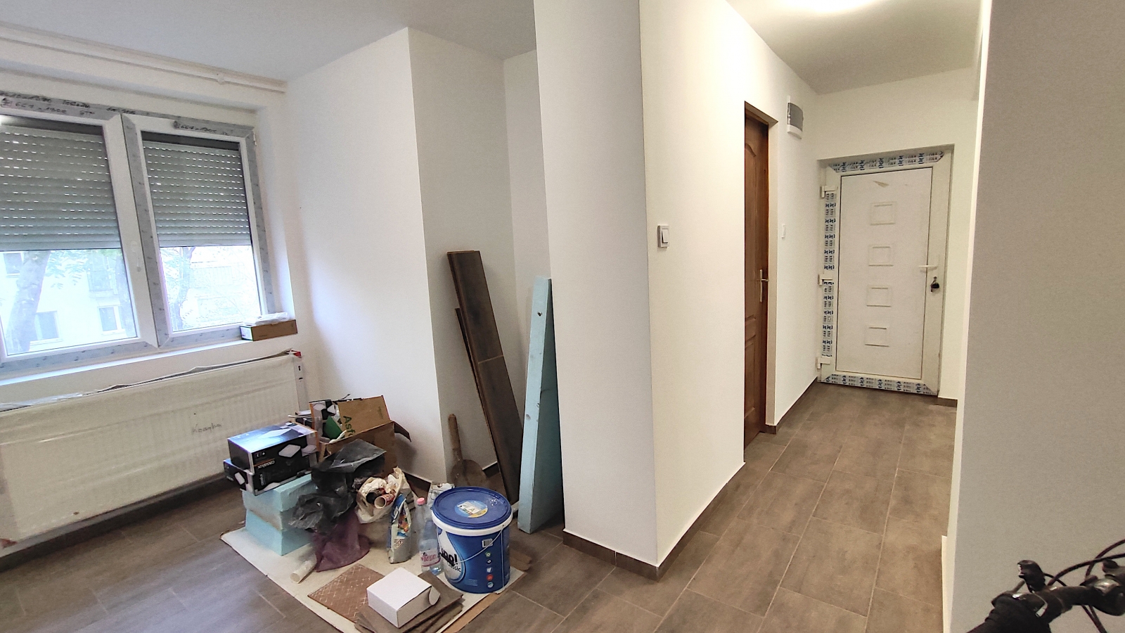 A szobákban lamináltpadló, a többi helyiségben hidegburkolat került.