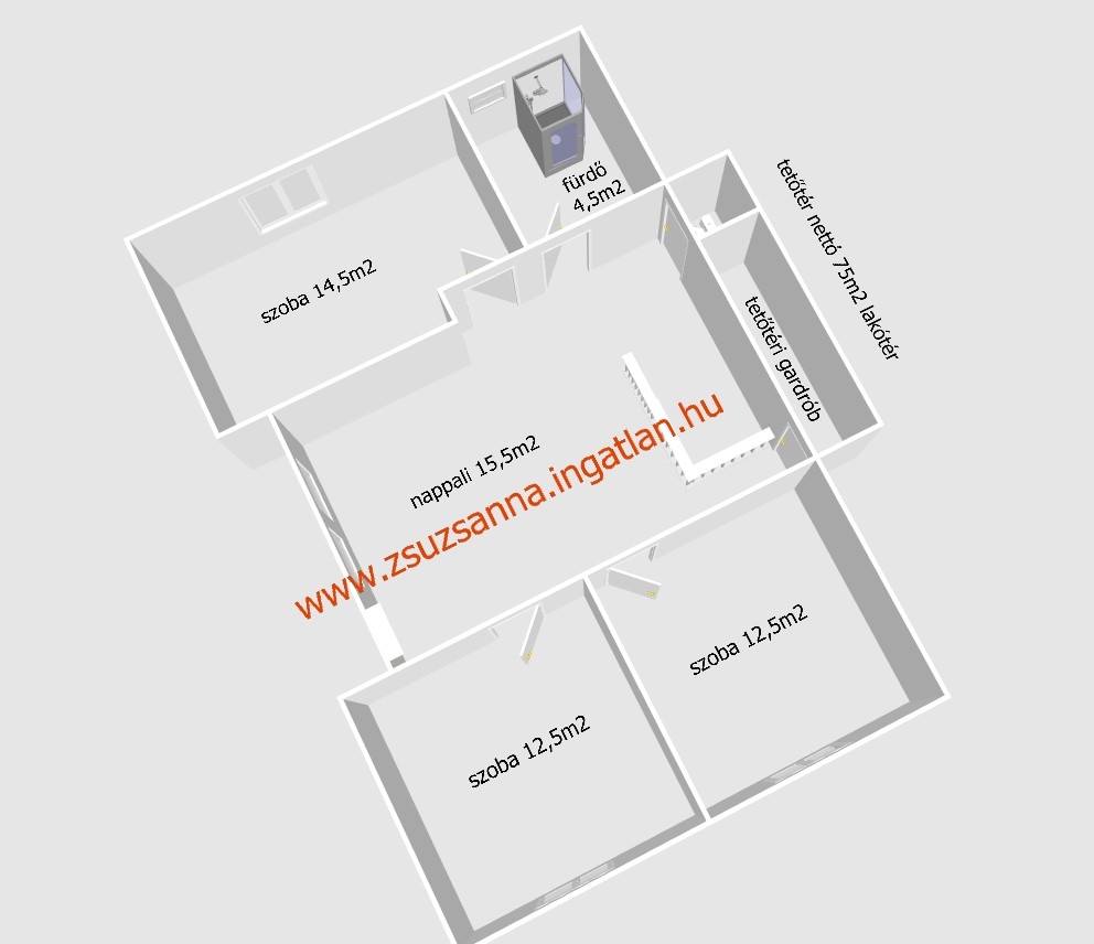 - a felső szinten 3db hálószoba és nappali, fürdő és wc található.