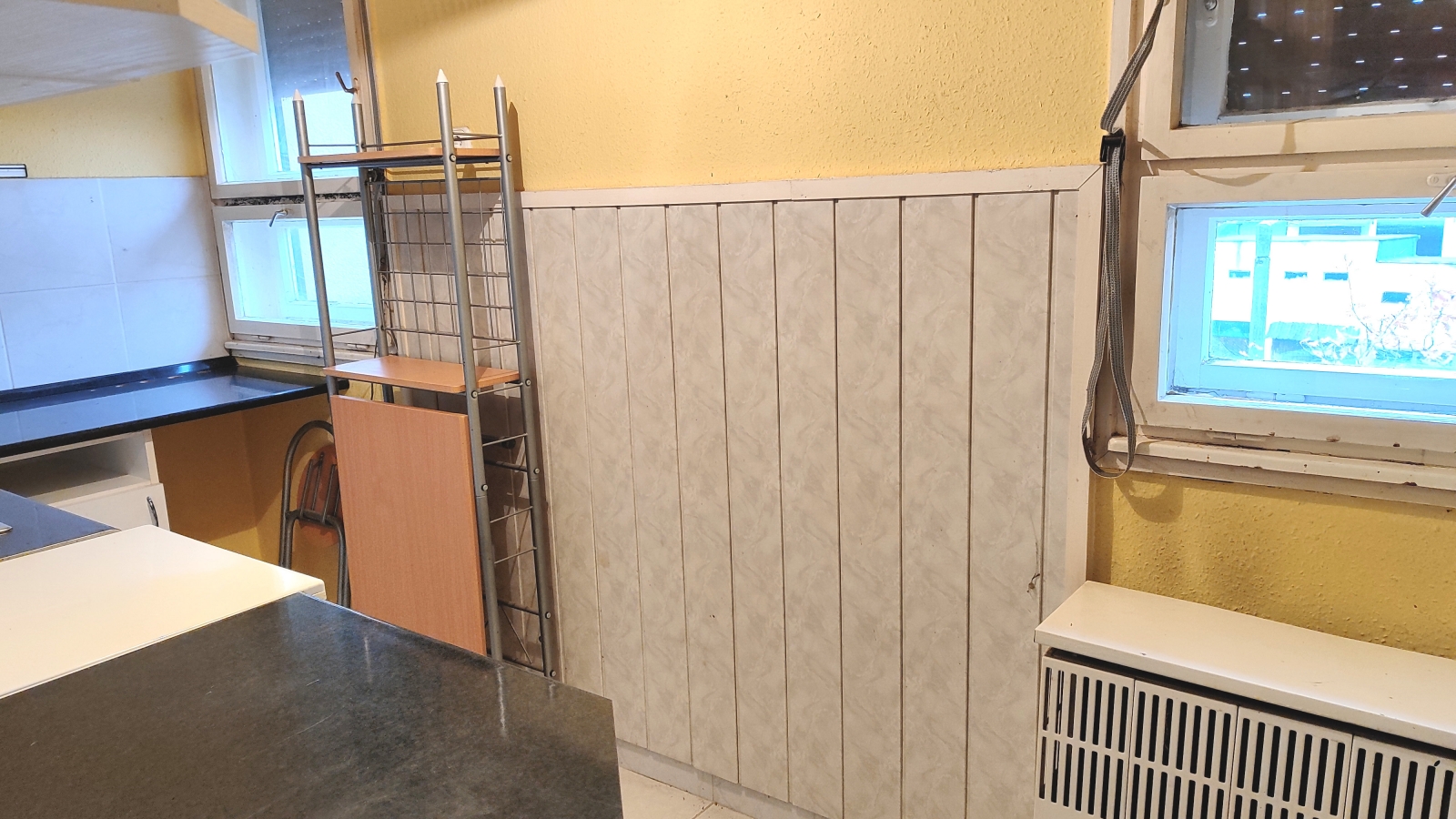 Az egész lakás padlója hidegurkolatos, járólappal fedett.