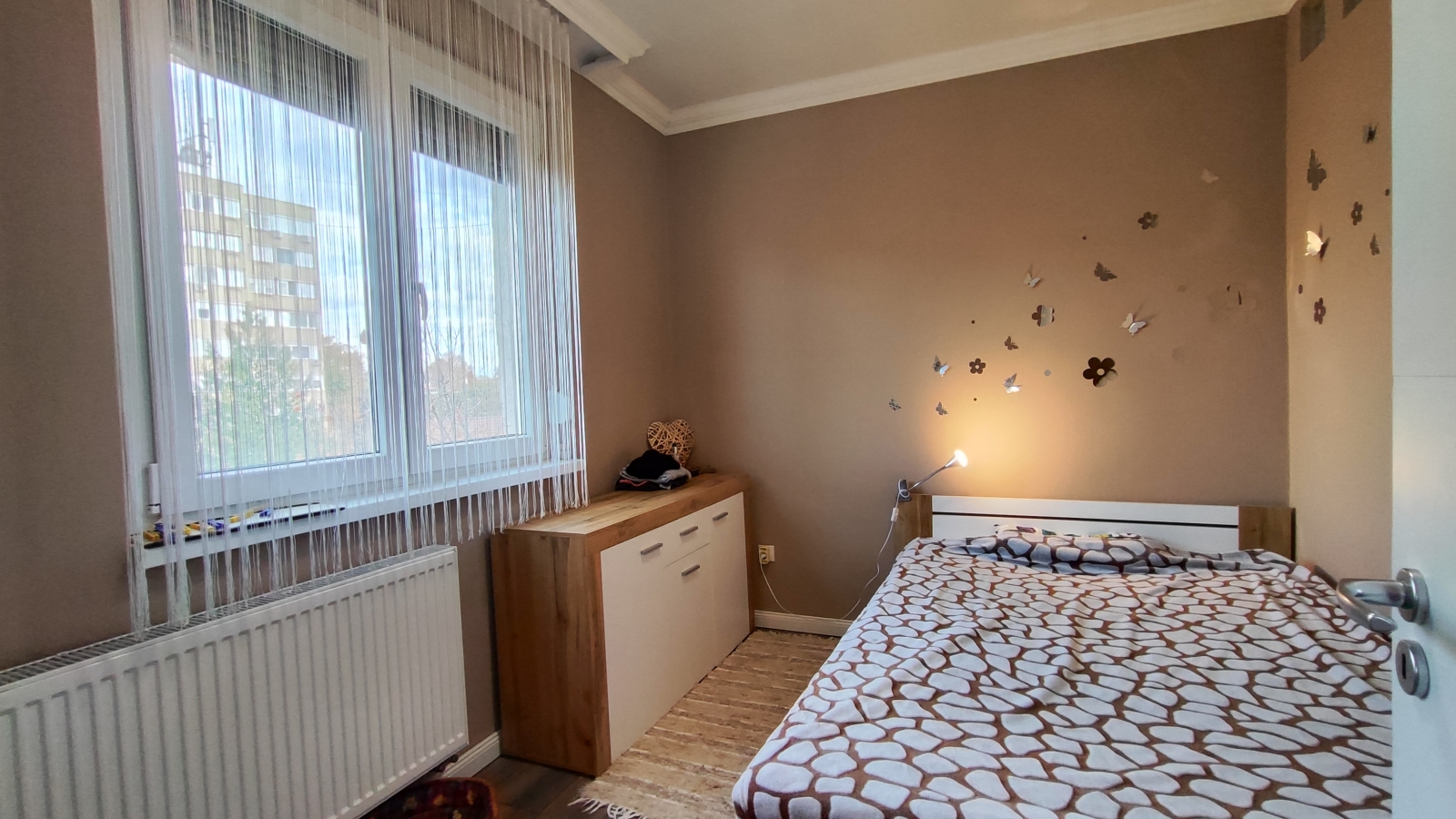 A lakás a legfelső szinten, a 3.emeleten található, kelet-nyugati fekvésű ablakok, az oldalsó falak déliek.
